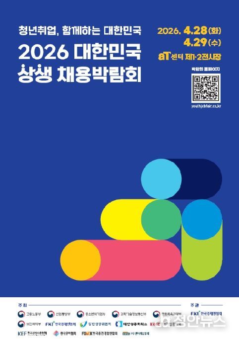 정안뉴스 안정주 기자 | 고용노동부를 비롯한 관계부처(과학기술정보통신부・문화체육관광부・산업통상부・보건복지부・중소벤처기업부) 및 한국경제인협회 등 경제단체는 공동으로 청년의 일자리 기회 확대를 위해 4월 28일과 29일, 서울 양재 aT센터에서 「2026 대한민국 상생 채용박람회」를 개최한다.