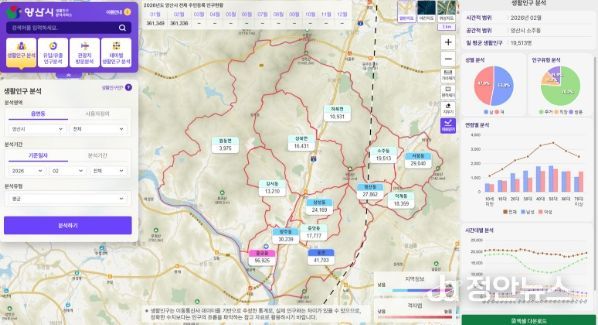 정안뉴스 김재홍 기자 | 양산시가 시민 누구나 지역 인구 흐름을 확인할 수 있는 ‘양산시 생활인구 분석 서비스’를 구축해 공개했다.