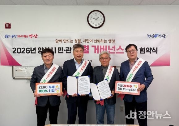 정안뉴스 김재홍 기자 | 양산시 상하수도사업소 수도과는 청렴에 대한 사회적 관심을 유도하고 청렴의식을 확산하기 위해 관내 수도급수공사 대행 지정업체와 함께 민관 청렴 거버넌스를 구성하고, 이를 위한 협약식을 가졌다.