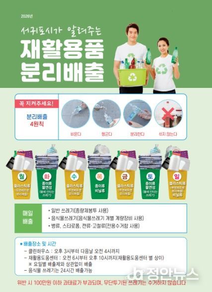 정안뉴스 안정주 기자 | 서귀포시는 시민들이 일상에서 헷갈리기 쉬운 생활쓰레기 분리배출 방법을 한눈에 이해하고 실천할 수 있도록 ‘서귀포시가 알려주는 재활용품 분리배출’ 책자를 1,000부 제작하고 본격적인 보급 및 홍보에 나섰다.