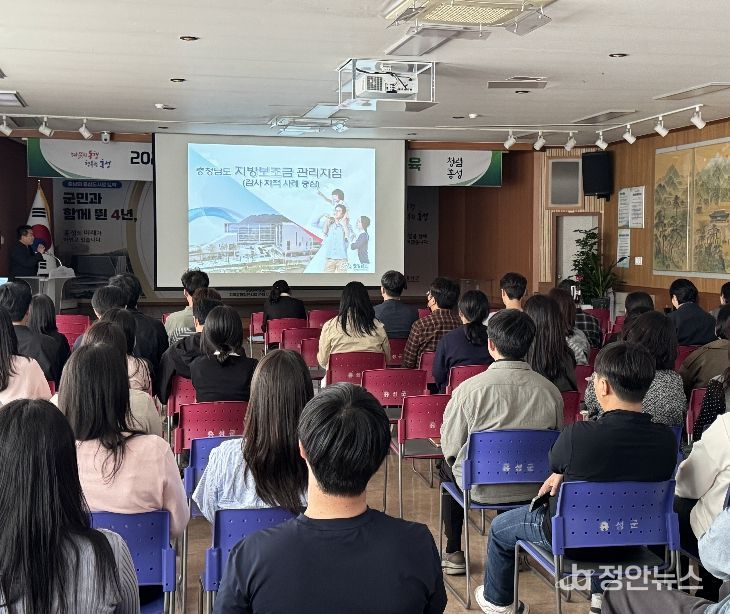 정안뉴스 안정주 기자 | 홍성군은 지난 4월 23일, 군청 대강당에서 보조금 및 민간위탁사업 담당자, 희망 참여 공무원을 대상으로‘2026년 민간보조사업 업무담당자 직무 교육’을 실시했다고 밝혔다.