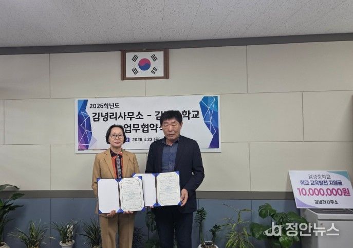정안뉴스 안정주 기자 | 제주도교육청 김녕중학교는 김녕리와 23일 김녕중학교의 지속 가능한 교육 발전과 지역 연계 강화를 위한 업무협약을 재체결했다.