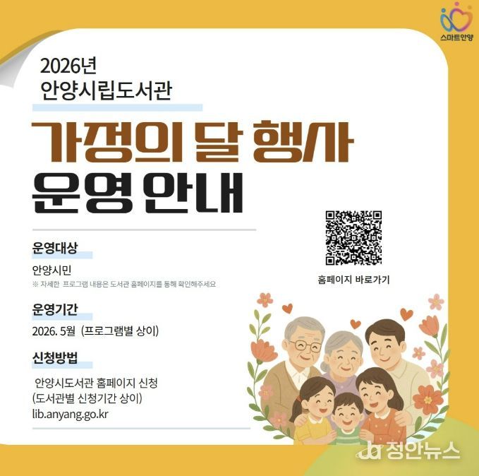 정안뉴스 안정주 기자 | 안양시도서관은 5월 가정의 달을 맞아 어린이와 부모가 함께하는 체험프로그램, 가족공연, 인문학 강연, 생활문화 강좌, 전시 등 다양한 행사를 마련했다.