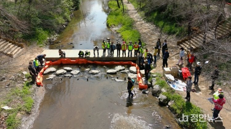 정안뉴스 안정주 기자 | 인천 남동구는 최근 만수동 장수천 일원에서 수질오염사고 대응 역량 강화를 위한 유관기관 합동 방제 훈련을 실시했다고 28일 밝혔다.
