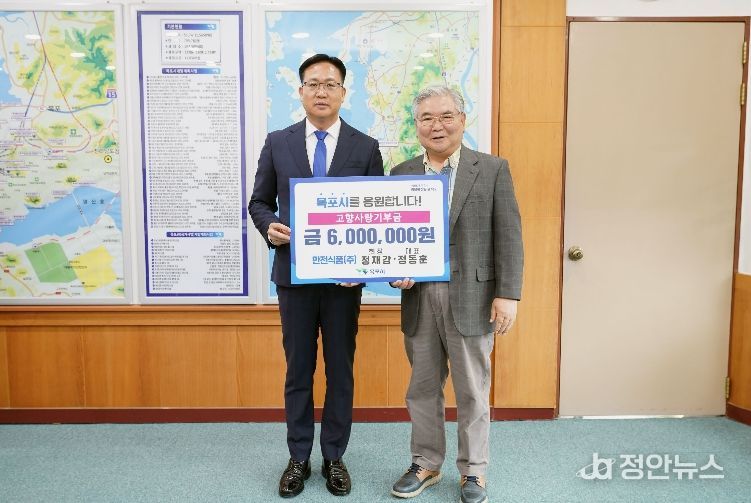 정안뉴스 안정주 기자 | 목포시는 지난 27일 만전식품 정재강 회장이 시를 방문해 고향사랑기부금 600만 원을 기탁했다고 밝혔다.