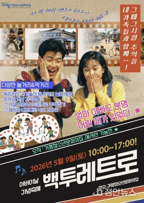 가평 군민을 대상으로 진행하는 이번 행사는 70~90년대 감성을 담은 체험과 놀이를 통해 청소년과 보호자 세대가 추억을 공유하도록 기획됐다.