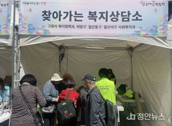 정안뉴스 안정주 기자 | 고양특례시 일산서구는 2026고양국제꽃박람회 개막일인 지난 24일 일산호수공원 광장 내 공공기관 홍보부스에서 ‘찾아가는 복지상담소’를 운영했다.