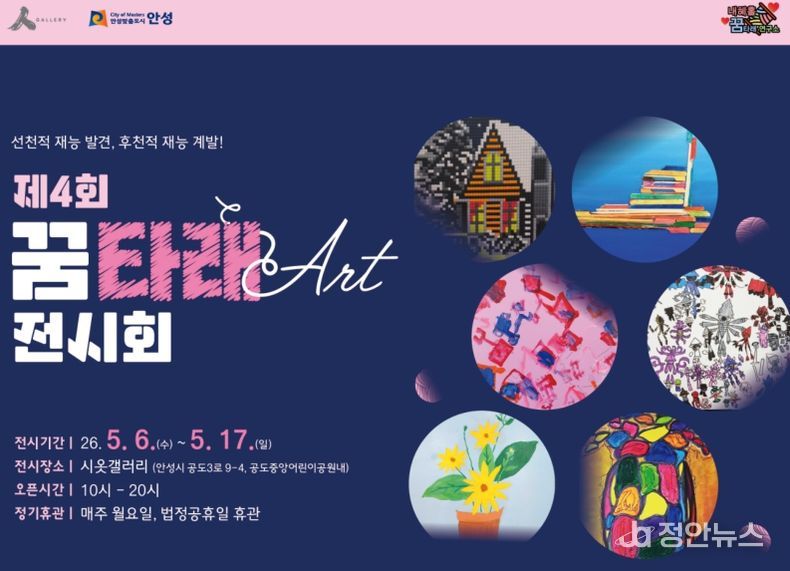 정안뉴스 안정주 기자 | 안성시 공도 작은미술관 시옷갤러리에서는 오는 5월 6일부터 5월 17일까지 '제4회 꿈타래 Art 전시회'가 개최된다. 내혜홀 꿈타래 연구소가 주최하는 이번 전시는 발달장애 예술인과 그 가족들의 예술 활동을 지역사회에 소개하고, 예술을 통한 소통의 장을 넓히기 위해 마련됐다.
