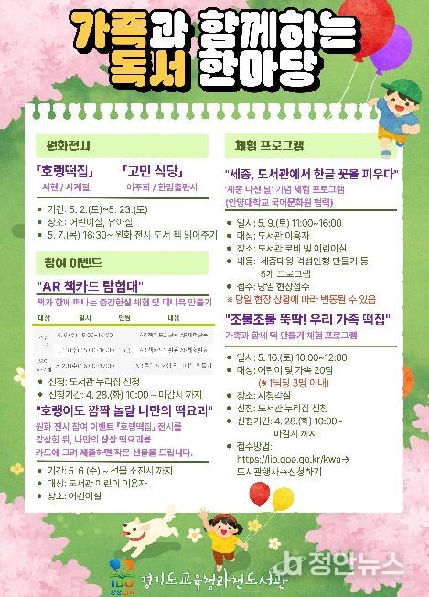 정안뉴스 안정주 기자 | 경기도교육청과천도서관이 5월 가정의 달을 맞아 ‘가족과 함께하는 독서 한마당’을 운영한다.
