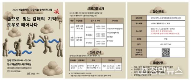 조일웅 문화도시센터장은 “이번 오감예술 창작프로그램이 시민들에게 창의적인 예술 체험 기회를 제공하고, 김해 지역 문화 활성화와 시민 참여 확대에 기여하는 계기가 되길 기대한다”고 밝혔다.