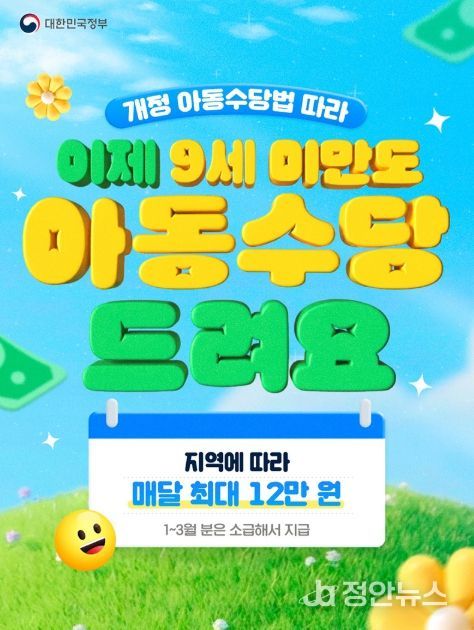 정안뉴스 안정주 기자 | 개정 아동수당법 따라 이제 9세 미만도 아동수당 드려요.