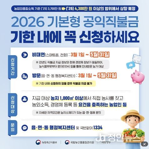 정안뉴스 안정주 기자 | 2026 기본형 공익직불금 기한 내에 꼭 신청하세요.