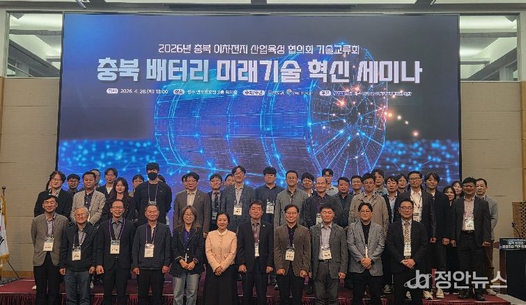 정안뉴스 안정주 기자 | 충북도는 28일 청주 엔포드호텔에서 대한민국 배터리 산업의 미래 비전을 모색하고 혁신 역량을 결집하기 위한 ‘2026년 충북 배터리 미래기술 혁신 세미나'를 개최했다.