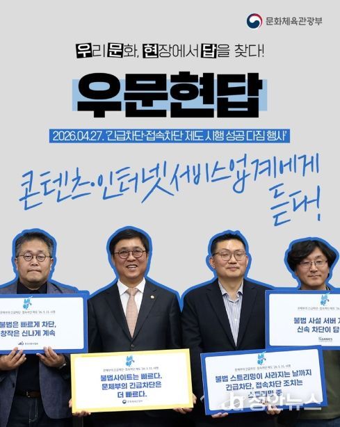 문화체육관광부 최휘영 장관은 4월 27일(월) 오후, 한국저작권보호원에서 '긴급차단·접속차단 제도 시행 성공 다짐 행사'를 가졌습니다.