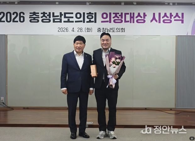 정안뉴스 안정주 기자 | 충남도의회 박정수 의원(천안9‧국민의힘)이 충남 산업 디지털 전환을 제도적으로 뒷받침한 입법 성과를 인정받아 28일 열린 ‘2026 충청남도의회 의정대상 시상식’에서 입법활동부문 의정대상을 수상했다.
