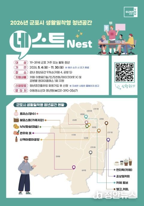군포시 관계자는 “이번 협약을 계기로 민관 협력 청년생태계가 활성화될 수 있도록 더욱 노력하겠다”며 “청년공간 네스트를 통해 청년들이 자신만의 꿈을 향해 비상할 수 있도록 지원을 아끼지 않겠다”고 밝혔다.