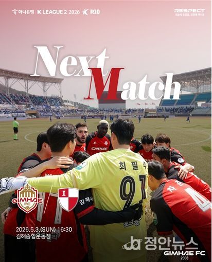 정안뉴스 김재홍 기자 | 김해FC2008(이하 ‘김해’)이 4연속 원정 일정을 마무리하고, 오는 5월 3일 오후 4시 30분 김해종합운동장에서 부산아이파크를 상대로 K리그 10라운드’ 홈 경기를 치른다.