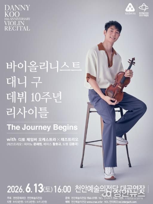 정안뉴스 안정주 기자 | 천안문화재단은 오는 6월 13일 천안예술의전당 대공연장에서 바이올리니스트 대니 구 데뷔 10주년 기념 리사이틀 ‘The Journey Begins’를 개최한다고 29일 밝혔다.