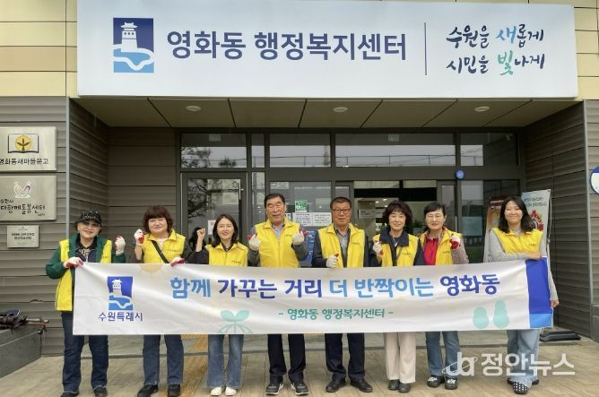 정안뉴스 안정주 기자 | 수원시 장안구 영화동은 지난 28일, 주민자치회와 함께 거북시장 사거리 일대에서 봄철 환경정비 활동을 실시하며 쾌적한 마을환경 조성에 나섰다.