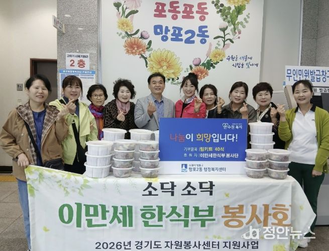 정안뉴스 안정주 기자 | 수원시 영통구 망포2동은 지난 28일 이만세 한식부 봉사회가 관내 경로당 어르신들을 위해 밀키트 40식을 기부하며 따뜻한 나눔을 실천했다고 밝혔다.