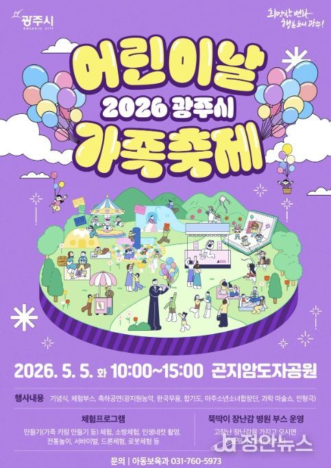 정안뉴스 안정주 기자 | 광주시는 제104회 어린이날을 맞아 오는 5월 5일 오전 10시 곤지암도자공원에서 ‘어린이날 가족축제’를 개최한다.
