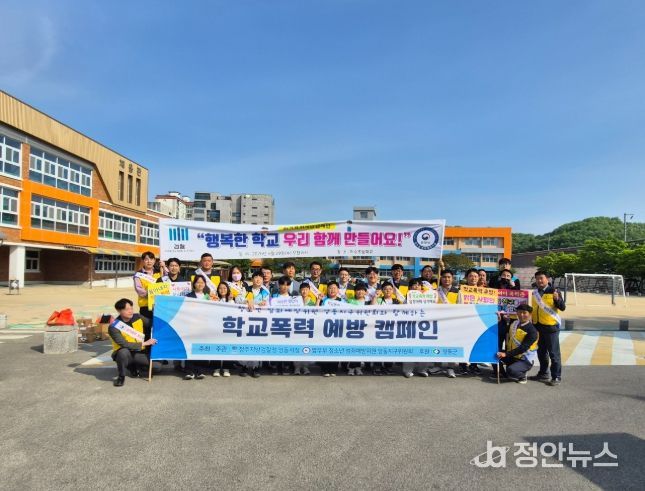정안뉴스 안정주 기자 | 청주지방검찰청 영동지청과 청소년 범죄예방위원 영동지구위원회에서는 29일 이수초등학교 정문에서 전교생을 대상으로 학교폭력예방 및 근절을 위한 ‘학교폭력 예방 캠페인’을 실시했다.
