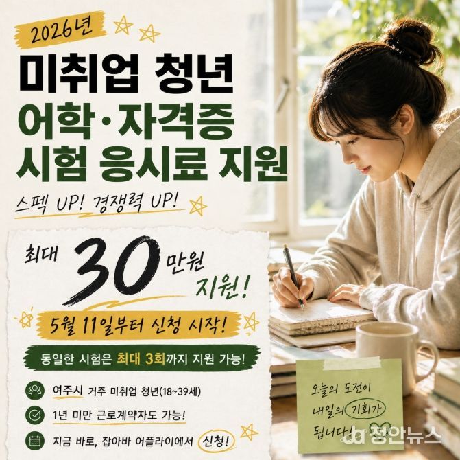 정안뉴스 안정주 기자 | 여주시는 오는 5월 11일부터 미취업 청년에 어학·자격시험 응시료를 지원하는 ‘경기청년 역량강화 기회지원’ 사업 접수를 시작한다.