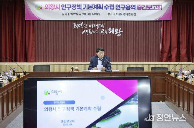 정안뉴스 안정주 기자 | 의왕시는 4월 28일 시청 중회의실에서 '인구정책 기본계획 수립 연구용역 중간보고회'를 개최하고, 의왕시 맞춤형 인구정책 방향을 논의했다.