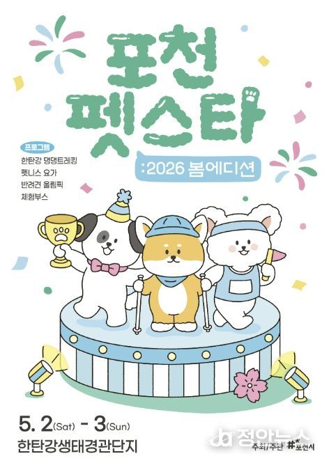 정안뉴스 안정주 기자 | 반려동물 친화관광도시 포천시는 오는 5월 2일부터 3일까지 이틀간 한탄강생태경관단지에서 ‘2026 포천 펫스타 봄 에디션’을 개최한다.