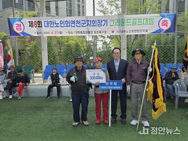 정안뉴스 안정주 기자 | 대한노인회 연천군지회는 지난 27일 연천군 공설운동장 인조 잔디 구장에서 제8회 지회장기 그라운드 골프대회를 개최했다.