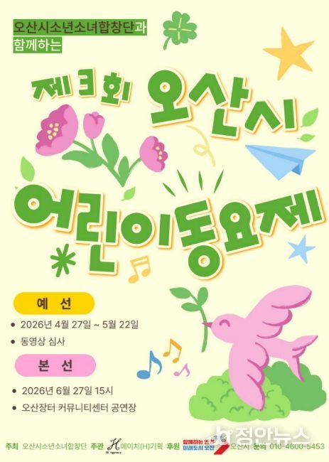 참가 대상은 오산시에 거주하는 7세 어린이부터 초등학생까지 동요를 좋아하는 아동이며, 참가비는 무료다. 예선 심사를 통해 선발된 총 15개 팀이 본선 무대에 오른다.