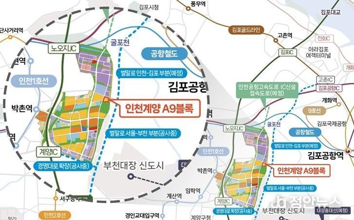 (인천계양) 신혼희망타운 A-9블록은 인근에 수도권 제1순환고속도로와 인천도시철도 1호선이 위치하여 서울과 수도권을 비롯해 다른 도시로의 접근이 용이하다. A-9블록이 위치한 인천계양 지구는 여의도 공원 4배 규모의 녹지공간이 지구를 관통하여 도심 어디서나 넓고 푸른 자연환경을 누릴 수 있다.