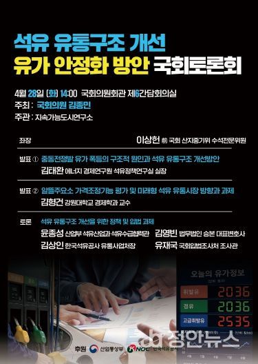 정안뉴스 안정주 기자 | 석유 유통구조의 구조적 문제를 진단하고 유가 안정화 방안을 모색하기 위한 국회 토론회가 열렸다.