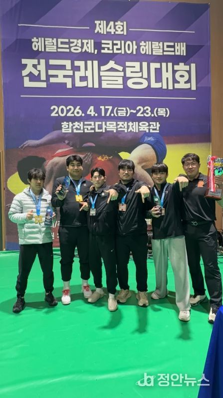정안뉴스 안정주 기자 | 칠곡군청 레슬링팀이 17일부터 합천다목적체육관에서 개최된‘제4회 헤럴드경제· 코리아헤럴드배 전국레슬링대회’에서 금메달 1개와 은메달 2개, 동메달 2개를 획득하며 단체종합우승을 거머쥐었다.