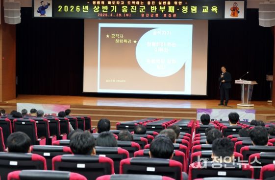 정안뉴스 안정주 기자 | 옹진군은 지난 29일 군청 효심관에서 전 직원을 대상으로 공직윤리 의식 고취를 위한 ‘2026년 상반기 공직자 반부패·청렴 교육’을 실시했다고 밝혔다.