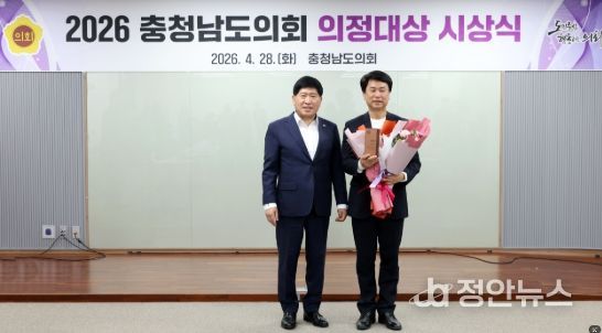 정안뉴스 안정주 기자 | 충남도의회 이상근 의원(홍성1·국민의힘)이 지난 28일 열린 ‘2026 충남도의회 의정대상 시상식’에서 참여와 소통 부문 의정대상을 수상했다.