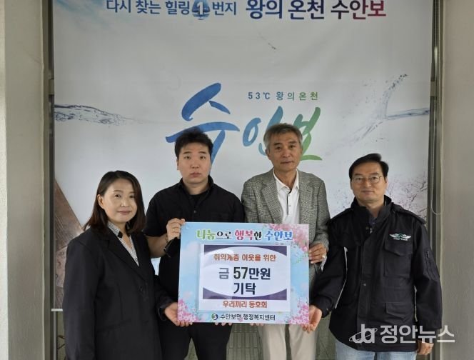 정안뉴스 안정주 기자 | 충주시 수안보면 지역사회보장협의체에 어려운 이웃을 돕기 위한 따뜻한 나눔의 손길이 잇따르고 있다.