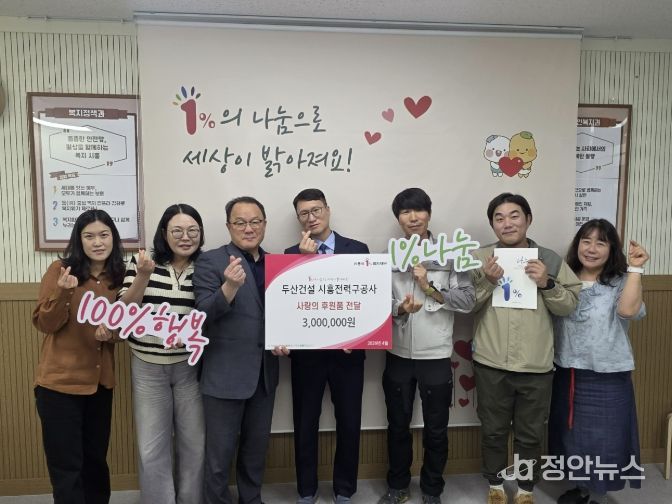 심윤식 복지국장은 “지역 어린이들을 위해 뜻깊은 나눔을 실천해 주신 두산건설 시흥전력구 현장의 관계자들에게 깊이 감사드린다”라며 “이번 후원이 어린이들의 건강한 성장 기반을 마련하는 데 도움이 되길 기대한다”라고 말했다.