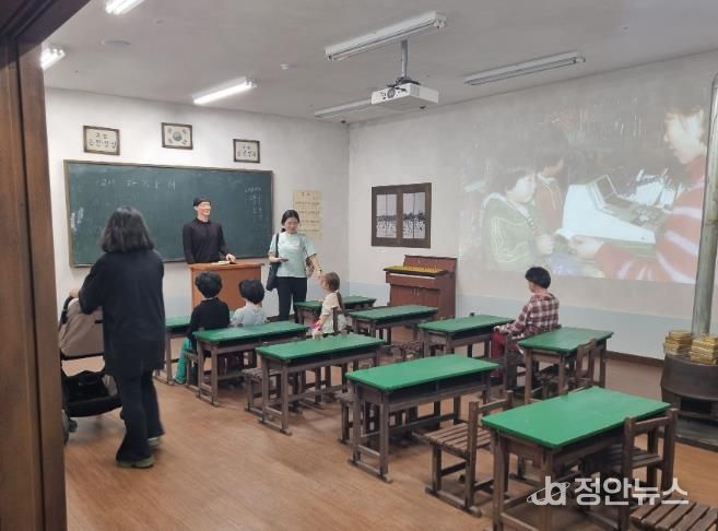 추억공작소 내부 전시실에는 옛 함평국민학교 교실을 재현해 교사와 학생들이 수업을 진행하는 모습을 연출했다.
