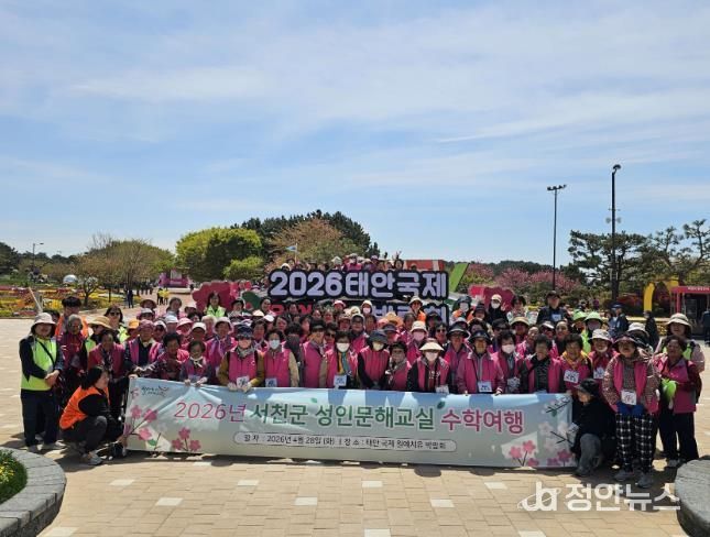 정안뉴스 안정주 기자 | 서천군은 성인문해교실 학습자 150여명이 지난 28일 태안에서 열린 국제 원예치유 박람회를 찾아 수학여행을 다녀왔다고 밝혔다.
