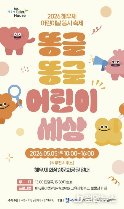 정안뉴스 안정주 기자 | ‘2026 해우재 어린이날 똥시 축제-똥글똥글 어린이 세상’이 5월 5일 오전 10시부터 오후 4시까지 해우재 화장실문화공원 일원에서 열린다.