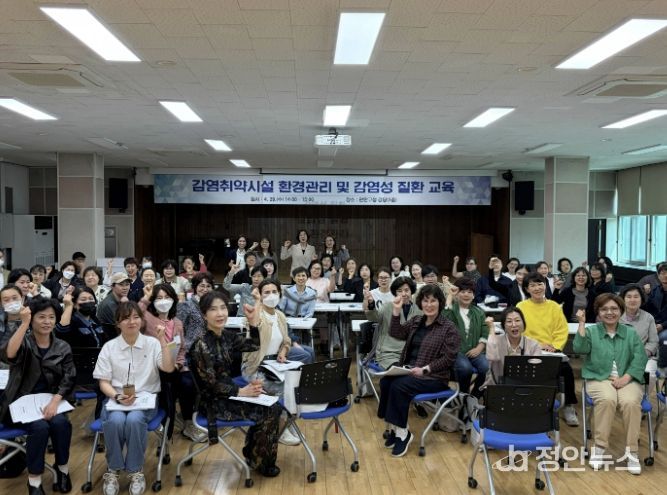 정안뉴스 안정주 기자 | 안양시 만안구보건소는 지난 29일 만안구청 3층 강당에서 관내 요양병원 등 감염취약시설 종사자를 대상으로 ‘감염취약시설 환경관리 및 감염성 질환 교육’을 실시했다고 30일 밝혔다.