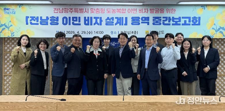 정안뉴스 안정주 기자 | 전라남도는 29일 도청에서 전남광주통합특별시 출범에 대비한 ‘통합특별시형 이민 비자 설계’ 용역 중간보고회를 열어, 도시와 농촌이 상생하는 외국인 정착·인재 유치 모델을 논의했다.