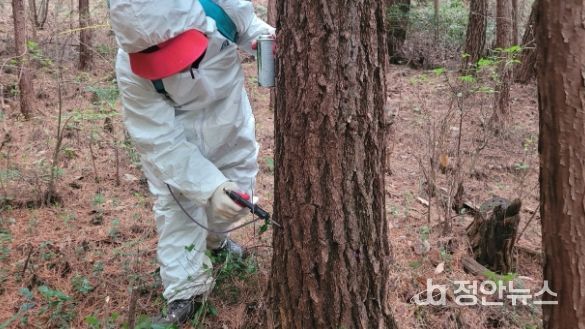 군은 예방나무주사와 1차 수종전환 사업을 완료하고, 매개충의 활동 이전인 5월 말까지 상반기 방제사업을 마무리하기 위해 최선을 다하고 있다.