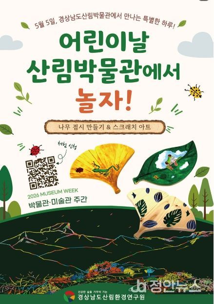 정안뉴스 김재홍 기자 | 경상남도산림환경연구원(원장 윤경식)은 어린이날과 세계 박물관의 날(매년 5월 18일)을 기념해 경상남도산림박물관에서 체험·교육 프로그램을 운영한다고 밝혔다.