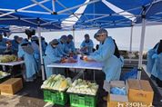 정안뉴스 안정주 기자 | 재단법인 군산먹거리통합지원센터(이사장 강임준)가 22일 군산로컬푸드복합센터(철길마을점)에서 개최한‘시민과 함께하는 공감가득 김장한마당 체험 행사’를 성황리에 마무리했다. 이번 행사는 본격적인 김장철을 맞아 시민들이 가족과 함께 김장을 체험하고 로컬푸드 농산물의 우수성을 알리는‘가득행사’와 군산대 학생 자원봉사자 30명이 참여하는 나눔 봉사활동인‘공감행사’로 진행됐다. 지난 11월 3일부터 직매장과 네이버폼을 통해 김장 체험을 희망하는 가족단위 참가자를 선착순 모집하여 오전 오후 두 차례로 나누어 김장체험을 진행했으며, 총 80가구 250명이 참석했다. 참가자는 군산산 절임배추(15kg)와 양념(5kg) 20kg 기준 김장세트를 구입하고 준비된 부스에서 손쉽게 김장을 담가갔다. 이 중 군산대 학생 자원봉사자와 강임준 군산시장이 함께 담근 김장 김치 835kg(330포기)는 경암동 행정복지센터를 통해 취약계층 167가구에 가구당 5kg씩 전달될 예정이다. 김장 체험 외에도 군산 지역에서 생산된 신선한 농산물을 판매하는 직거래 장터와 먹거리 부스(붕어빵, 팝콘 등)가