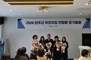 정안뉴스 안정주 기자 | 완주군 어린이집연합회가 지난 7일 정기총회를 열고, 차기 회장과 임원진을 소개하고, 2025년 결산 및 유공자 시상 등 연합회 주요 안건을 심의·의결했다. 이날 정기총회에서는 새롭게 선출된 이희봉(꿈나무예능어린이집 대표) 회장을 비롯한 차기 임원들이 소개됐으며, 신임 임원단은 2026년 3월부터 3년간 임기를 수행하며 완주군 보육 현장을 대표해 어린이집연합회를 이끌어갈 예정이다. 이어 보육 현장에서 묵묵히 헌신해 온 우수 보육교사들을 대상으로 국회의원상과 군의장상 수여식이 진행됐다. 총 13명의 보육교사에게 국회의원상(3명)과 군의장상(10명)을 수여하며, 아이들의 건강한 성장과 보육 서비스 질 향상에 기여한 공로를 격려했다. 또한 2025년 한 해 동안 추진한 연합회 사업 성과와 함께 회계 운영 전반에 대한 결산 및 감사보고가 이뤄졌으며, 지난 3년간의 연합회 운영 전반을 돌아보는 결산의 자리가 마련됐다. 이와 함께 임기 3년을 마무리한 현 임원들에게는 어린이집연합회 발전과 보육 현장 권익 향상에 기여한 노고를 기리며 공로패가 수여됐다. 특히 보육