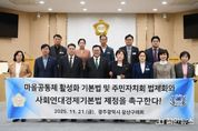 정안뉴스 안정주 기자 | 광산구의회가 21일 제301회 정례회 제1차 본회의에서 ‘마을공동체 활성화 기본법, 주민자치회 법제화, 사회연대경제기본법 제정 촉구 건의안’을 채택했다. 광산구의회는 조영임 의원(더불어민주당, 첨단1·2동)이 대표 발의한 건의안을 통해 “우리 사회는 물질적 풍요 속에서 공동체 해체, 사회적 고립이 심화되고 있다”며 “지역 문제와 불평등을 해결하기 위해서는 행정 중심의 개발 논리가 아닌 주민 스스로 공공의 가치를 만들어가는 풀뿌리 자치의 회복이 필요하다”고 강조했다. 이어 “마을은 민주주의의 출발점이자 주민이 일상에서 협력과 연대를 실천하는 삶의 학교지만, 마을공동체의 현행 제도는 사업 중심으로 분절되어 있고 법적 근거가 미비하다”고 지적했다. 또한 “주민자치회 역시 생활자치의 핵심으로, 주민이 직접 마을계획 수립과 예산 편성에 참여하는 제도적 권한이 보장돼야 한다”며 “주민자치회를 통해 지방분권의 완성과 생활민주주의를 실현할 수 있도록 법제화되어야 한다”고 설명했다. 아울러 “사회연대경제는 협동과 상생을 통한 사람 중심의 경제를 구현하는 새로운 대안”이라며 “사회연대경제기