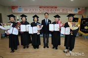 정안뉴스 안정주 기자 | 대한노인회 고창군지회 부설 고창노인청춘대학이 21일 고창군지회 3층 대강당에서 배움의 열정을 꽃피운 어르신들을 위한 제23회 졸업식을 개최했다. 이번 졸업식은 지난 4월 입학해 약 8개월간 노년의 지혜와 활력을 채운 어르신들이 영광스러운 졸업장을 받았다. 행사에는 심덕섭 고창군수, 조민규 고창군의회 군의장, 대한노인회 고창군지회 이공진 지회장, 유종일 노인대학장을 비롯한 주요 내빈과 졸업생 및 가족 200여 명이 참석하여 이들의 새로운 출발을 축하했다. 올해 고창노인청춘대학은 어르신들의 삶의 질 향상과 건강 증진을 목표로 교양 강좌, 노래교실, 실버 체조 등 활력 넘치는 건강 프로그램과 현장체험학습 등 다채로운 교육과정을 운영해 왔다. 어려운 여건 속에서도 꾸준히 학업에 임하여 열정을 보여준 졸업생들은 이날 배움의 결실을 맺었다.