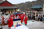 정안뉴스 안정주 기자 | 의정부시는 2월 26일 (재)의정부문화재단이 주최하고 대한불교조계종 회룡사가 협력해 개최한 ‘2026 의정부 태조 어진 의례’를 통해 태조 어진 제작 완료를 공식적으로 알렸다. 이번 행사는 의정부와 깊은 인연을 지닌 태조 이성계의 역사적 의미를 재조명하고, 태조 어진 제작 완료를 계기로 도시 정체성을 역사문화 자산으로 확장하고자 마련됐다. 행사는 총 3부로 구성됐다. 1부는 의정부시청 태조홀에서 ‘의정부 역사문화포럼: 조선 태조‧태종 재회의 의미’를 주제로 열렸다. 태조 이성계 어진 제작에 참여한 권오창 화백의 제작 완료 보고와 함께 의정부 태조 어진 제작의 의미를 조명하는 발제와 토론이 진행됐다. 또한 의정부문화재단이 준비 중인 태조와 태종의 상봉을 주제로 한 창작 뮤지컬 제작 계획도 발표됐다. 2부 행사는 시청 본관 입구에서 태조 어진 제작 완료를 알리는 고유제로 진행됐다. 고유제는 중대한 일을 시작하거나 마친 뒤 그 사실을 신명이나 선현에게 알리는 전통 의례로, 이날 의례는 제작이 완료된 태조 어진을 기념하는 자리로 엄숙하게 거행됐다. 고유제 이후 어진은 회룡사로 이